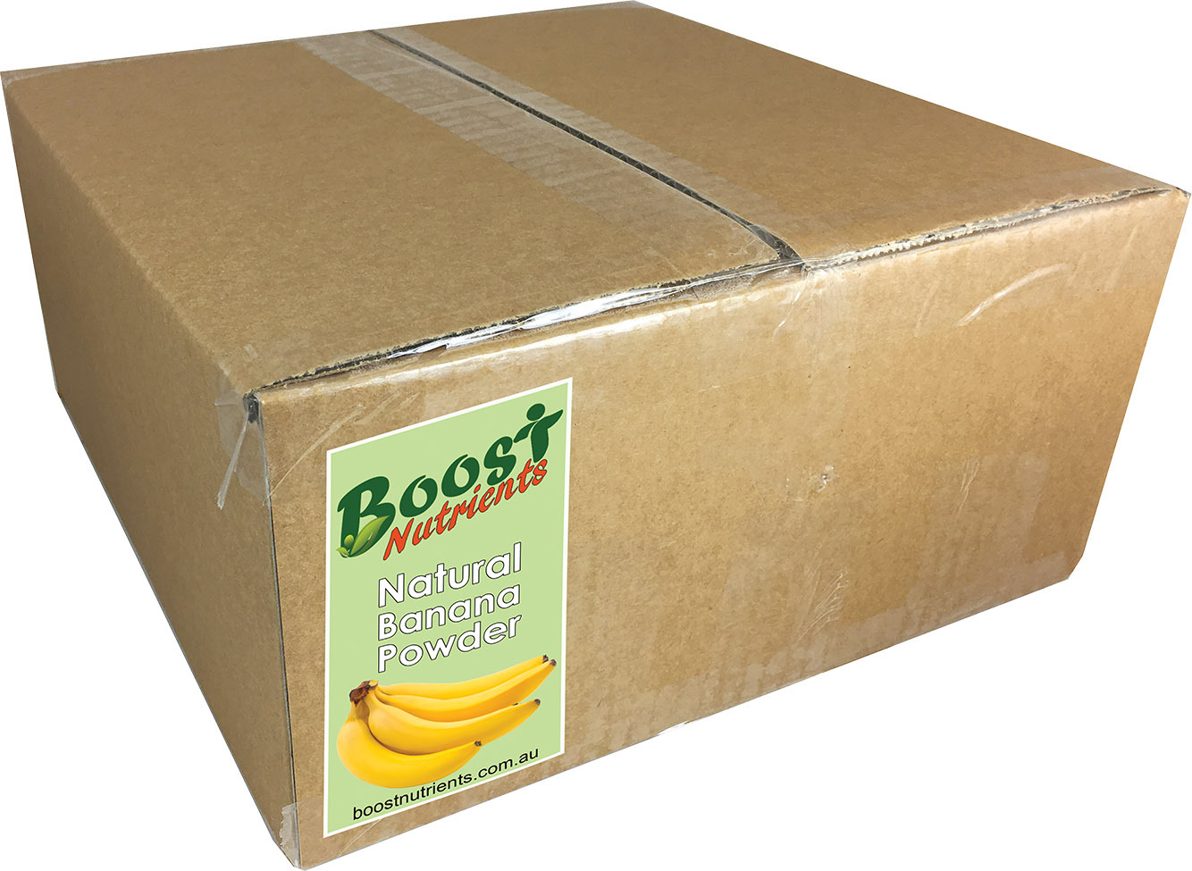 Bulk 10kg Carton of Banana Powder for Food Manufacturers. Create easy healthy smoothies with Banana powder a dried fruit powder for smoothie bowl ingredients also for Acai bowl or granola bowl toppings Boost Nutrients are Australian distributors of high-quality food powders to cafes caterers and other retailers. We offer high quality nutrient rich ingredients with real nutritional value from raw fruit and vegetable ingredients. Our products are manufactured under HACCP certified conditions and from organic certified manufacturers and processors where we show organic products. Boost Nutrients is a local Aussie brand that uses only fresh raw ingredients sourced from Australian growers wherever practical and otherwise from high-quality overseas suppliers. Our natural fruit and vegetable powders are ideal ingredients for many types of healthy food products. They are particularly good for quick healthy smoothies and for toppings for Acai bowl and or granola bowl meals. High Nutrient Retention. The Boost Nutrients brand fruit & vegetable powders have a high retention of nutrients due to the unique drying process. For example, our Beetroot juice powder has Nitrite levels at 2180 mg per 100g and our carrot juice powder has beta-carotene levels of 1010 mg per Kg. Not Freeze-Dried Products. The Boost Nutrients powders fruit & Veg powders are made with a totally different technology to freeze dried products. They are made with a low temperature continuous evaporation process which is very gentle on the ingredients. Its also a much faster process where the low temperature drying process retains the nutrients and volatile flavours food colours without diminishing them during the process. This unique low-temperature drying process gently forms a natural crystalline structure. It easily the most gentle and least intrusive method around and is far superior to every other method in preserving the food flavour, aroma and the colour and most of course the precious nutrients. They products are first turned into a puree then evaporated. So, the powders produced are pure and natural with much higher nutritional value. How To use Boost Nutrients Powders. The above data shows the ratio of powder to real fruit or vegetables for each product. This will allow users to calculate how use the powders instead of real fruit or vegetables from a recipe. Gluten Free Product. All of the Boost Nutrient powdered Fruit and vegetable products are gluten free and allergen free. Product Storage. Boost Nutrient’s Powders have quite a long shelf life (as much as 24 months from manufacture) if correctly stored. They are packed in foil lined resealable bags. We recommend storing all unopened powders in a cool dry place, ideally less than 20C. After opening it is best to push the air out of the packet before re-seal the bag carefully with its zip lock. You should preferably store resealed bags in the fridge to ensure low moisture. Never leave bags opened for as the powders will absorb moisture from the air. Made in Australia. The Boost Nutrients business brand is Australian owned. All the Boost Nutrients fruit & vegetable powders are made in Australia at a state-of-the-art drying facility in Queensland. Ingredients used are mainly Australia grown with the remainder imported when suitable local fruit and vegetables can nor be located.