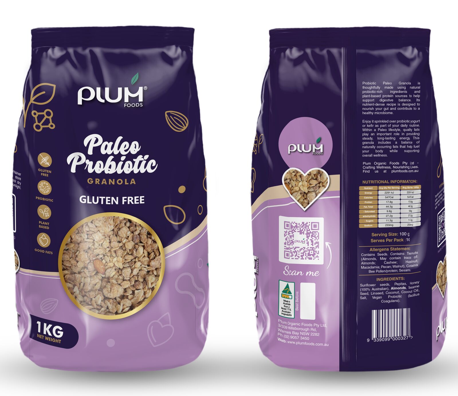 Our Paleo Probiotic – Gluten-Free Granola 1kg – Plum Foods is a favorite in high grade nutritional ingredients for paleo granola, gluten free, gluten free granola, Paleo cereal, gluten free cereal,probiotic, probiotic granola,.Gluten-Free Naturally free from gluten-containing ingredients and we are delivering Smoothie and Acai Bowl ingredients to retailers in Sydney Melbourne and Brisbane suburbs overnight. We also supply consumers direct for your healthy breakfast smoothies conveniently stored in your home pantry.